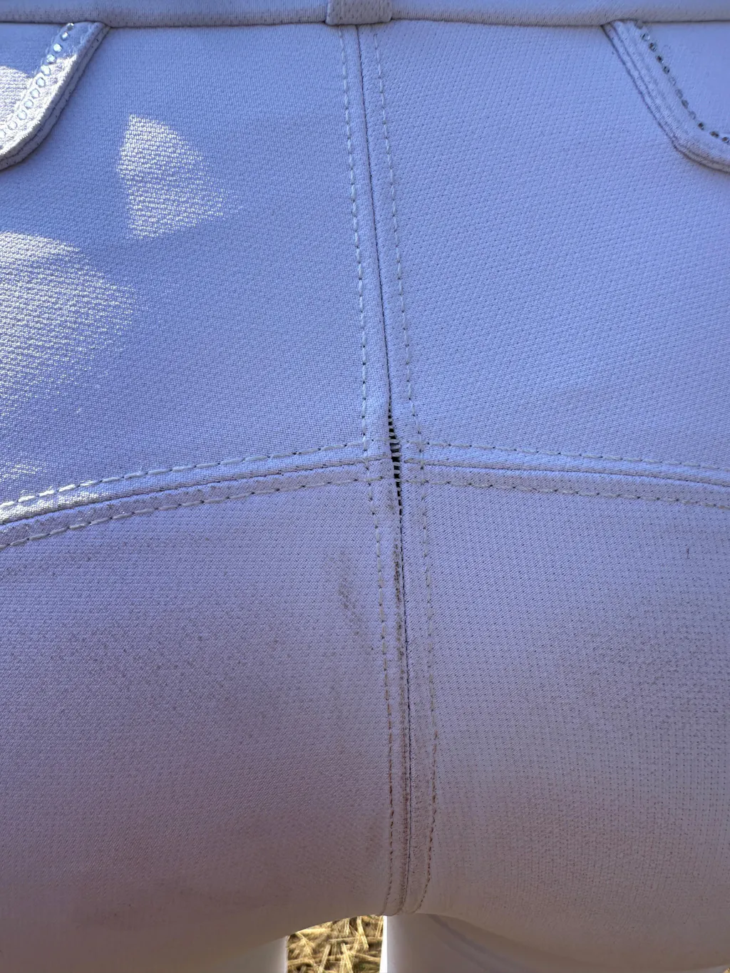 • Le pantalon d'équitation Élégance est doté d'un rang de strass sur la sur-ceinture et également le long des deux poches avant et arrière.